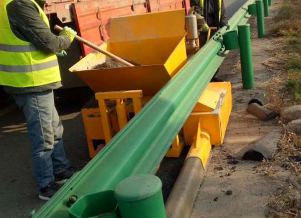 小型攔水帶機(jī)主要是指其能生產(chǎn)出的攔水帶尺寸較小,一般不超過(guò)25*25cm.機(jī)器設(shè)計(jì)緊湊,體型較小,特別適合高速路面護(hù)欄板下小型攔水帶施工。一人控制方向,一人上料,一人收尾即可。操作簡(jiǎn)易上手快。